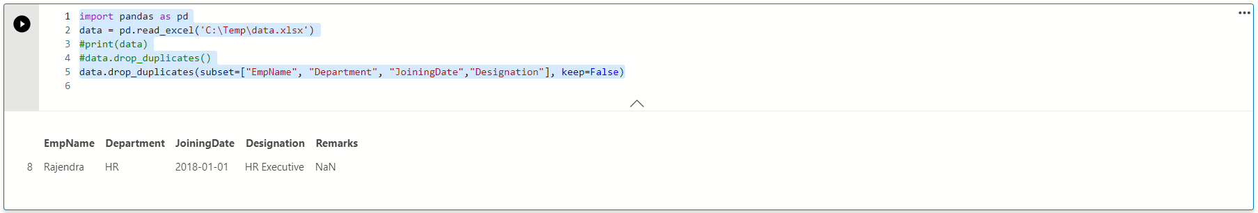 Remove Duplicates In Excel Using Python. In this argument, we define the column list to consider for identifying duplicate rows. This will automatically remove any duplicates because dictionaries cannot have duplicate keys.